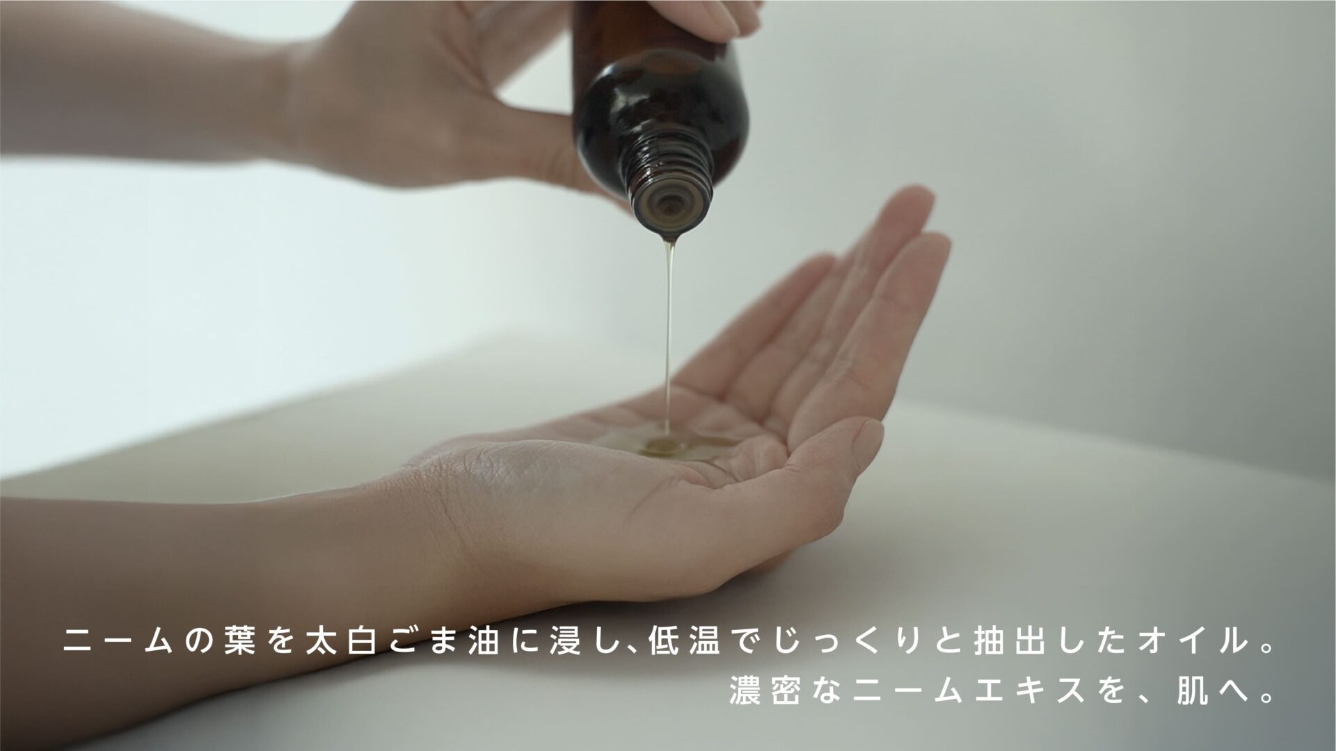 古くから親しまれてきたニームの葉を、精製度の高い太白ごま油に漬け込み、低温でじっくり時間をかけて抽出しました。熱をかけすぎず、余計なものを加えない丁寧な製法です。