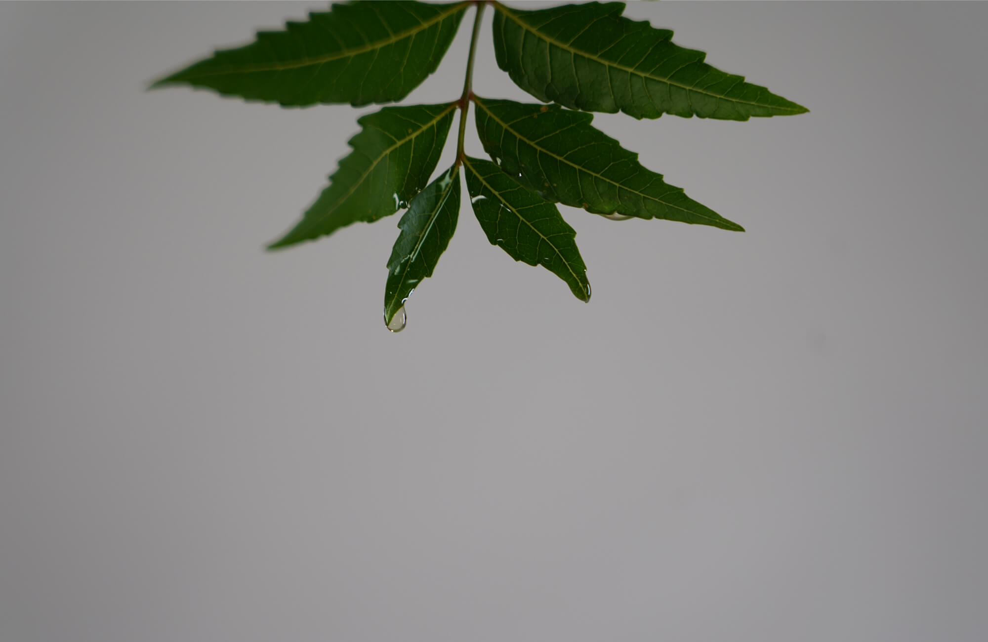 ニームは、葉だけでなく、樹皮、枝、種子の全てに薬効があり、インドの伝統医学アーユルヴェーダでも広く処方されてきました。何世紀にもわたって多くの病気に対する効能が証明されたニームは、「村の薬局」と称されてきました。アーユルヴェーダによると、皮膚疾患の原因は「体内の過剰な糖分」によって引き起こされると言われています。ハーブの中でも苦味が最も特徴的なニームは、皮膚疾患に対して最高の万能薬と言えます。日々の生活においても、ニームオイルやニーム葉の抽出液をスキンケアに取り入れたり、入浴剤として活用することで、健やかな肌を保つことに期待できます。